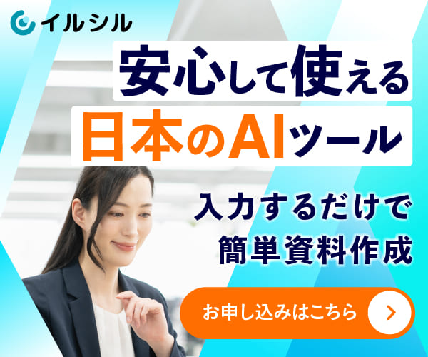 「本当に信頼できるの?」という不安を持つ方も多いですが、イルシルはすでに国内上場企業を含む1,300社以上に導入されています。日本の基準に基づいたセキュリティ体制を構築しており、機密情報を含む社内資料の作成にも安心して使えます。